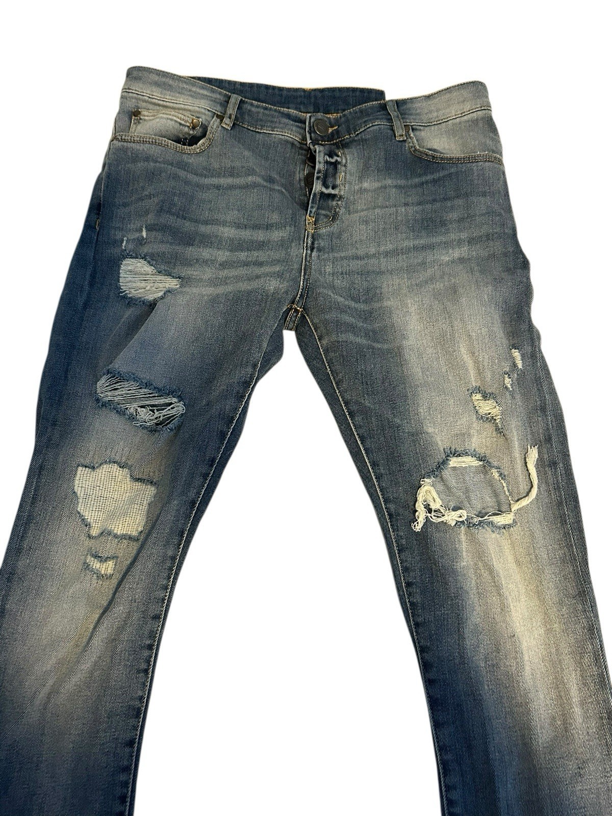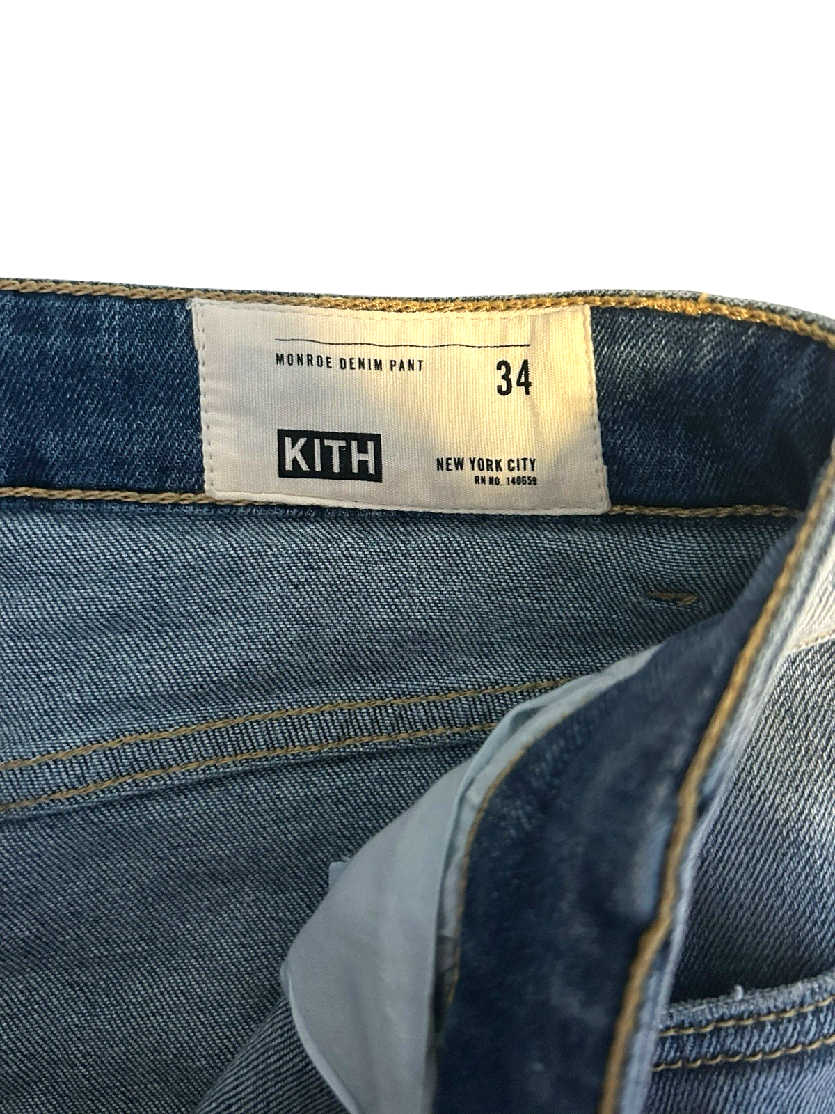 - Kith Monroe Denim Pant Distressed Slim Fit Jeans - Size 34 Button Fly Wash