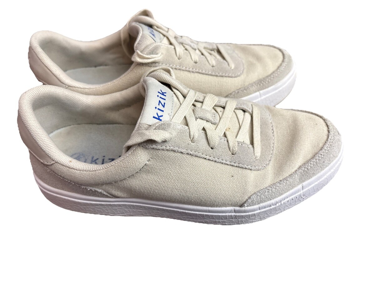 - Kizik Shoes Mens 7.5 Women’s 9 Prague Casual Low Sneakers Beige Canvas Lace Up
