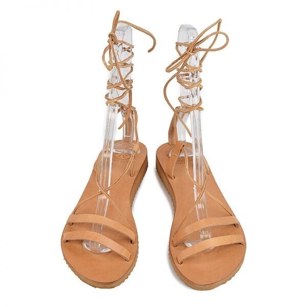 - Knöchelmanschette Leder Sandalen Naturfarbe für Damen Handmade in Greece