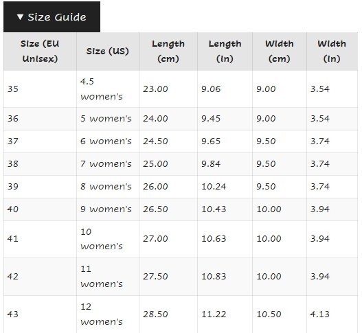 Sondergroßen erhaltlich: Erhaltlich in verschiedenen Großen von 35 bis 44 (EU).