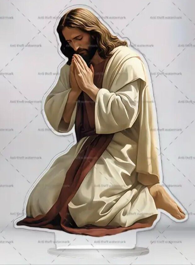 You are purchasing the most beautiful image of Our Lord Jesus Christ, kneeling praying, set on 2D acrylic. This is perfect for any room, classroom, or any place where you want to display for faith and devotion to Our Lord Jesus.