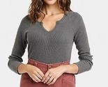 Knox Rose Womens Size Small LS Notch Neck Waffle Thermal Knit Top, Dark Grey