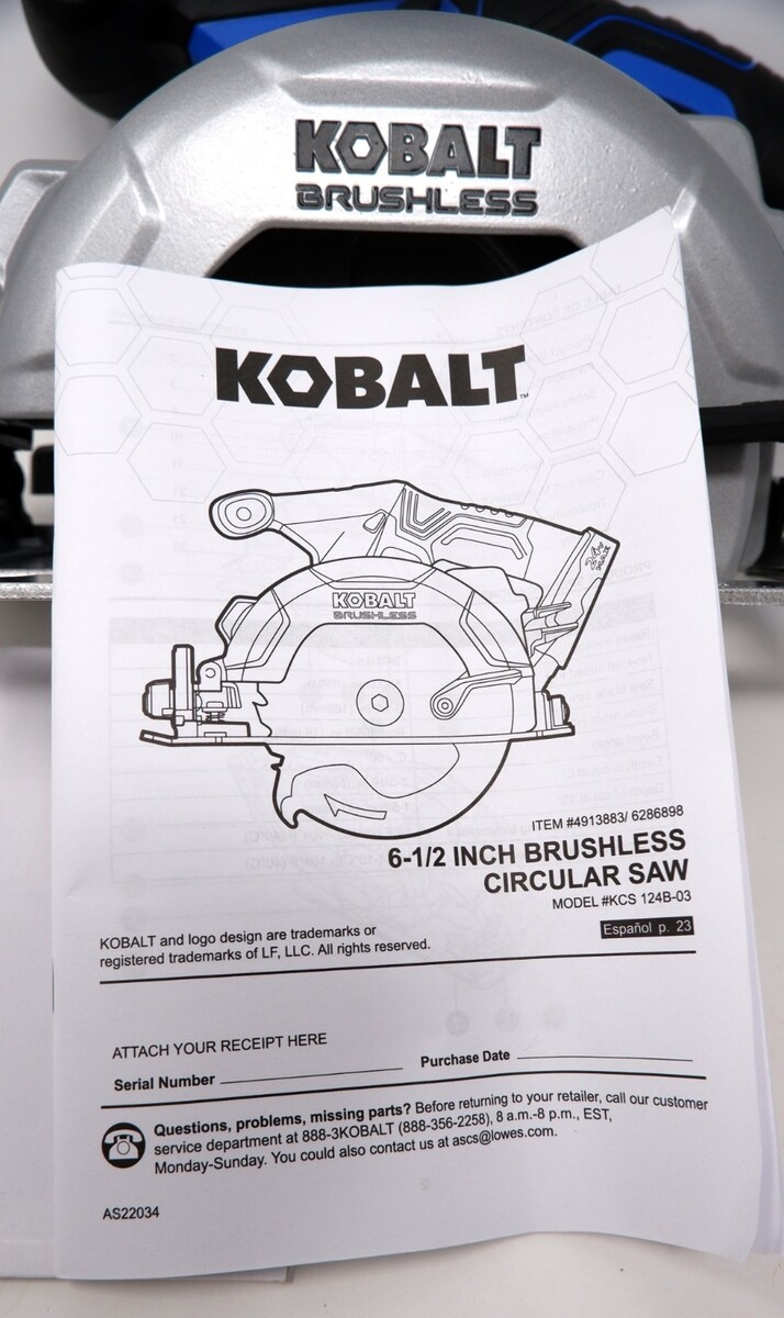 - KOBALT GENUINE KCS 124B-03 24V BRUSHLESS 6.5" CIRCULAR SAW WITH 24T BLADE - NEW