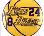 This large sticker is in the shape of a round basketball, with the colors purple and gold featuring Kobe Bryant's name, his numbers 8 and 24 and his legacy the words Mamba Mentality. Sticker measures 4.75" or 12.06 cm in diameter.