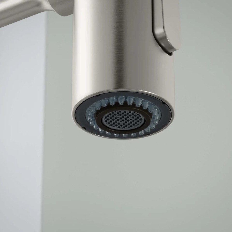 Two-function sprayhead with touch-control allows you to switch from stream to Sweep spray