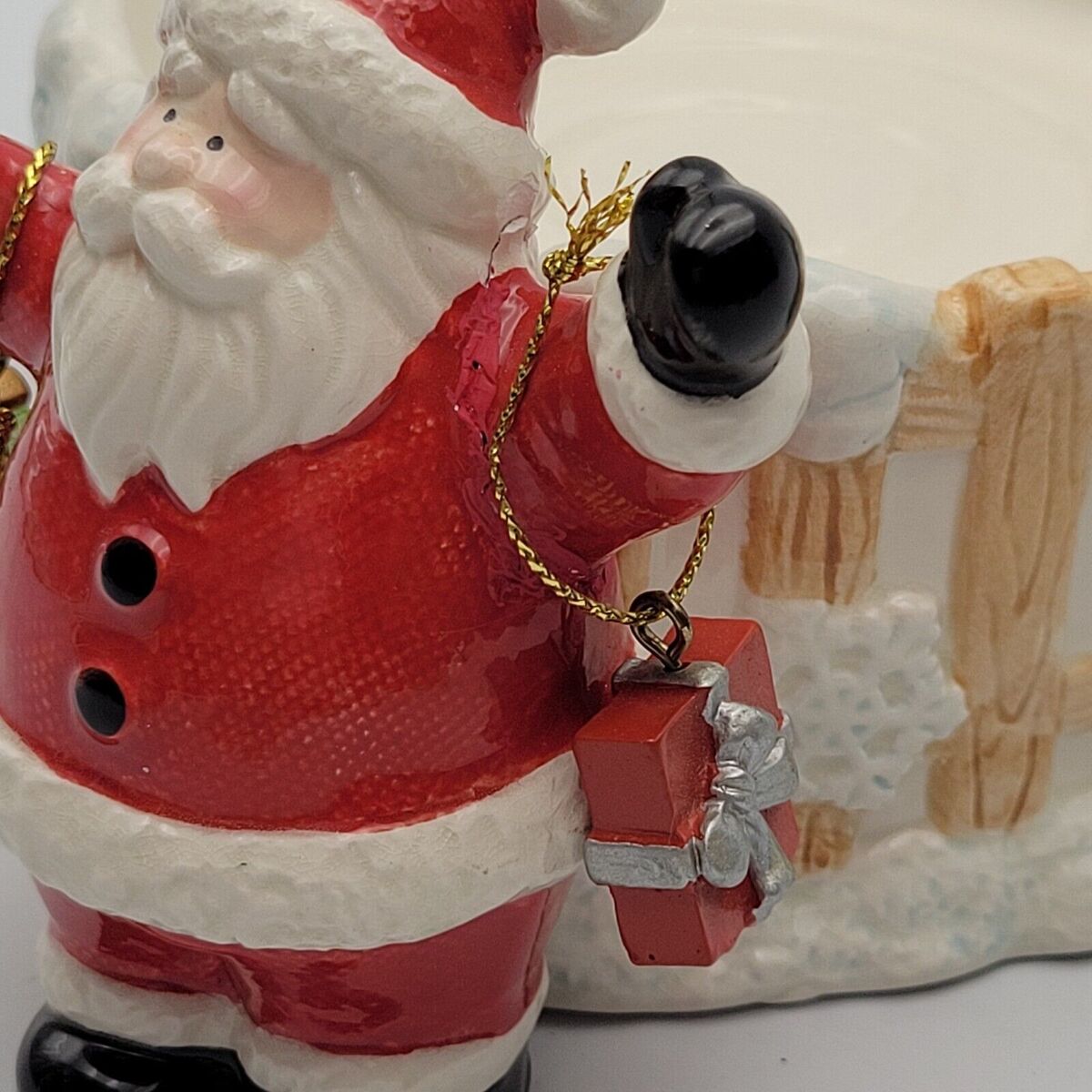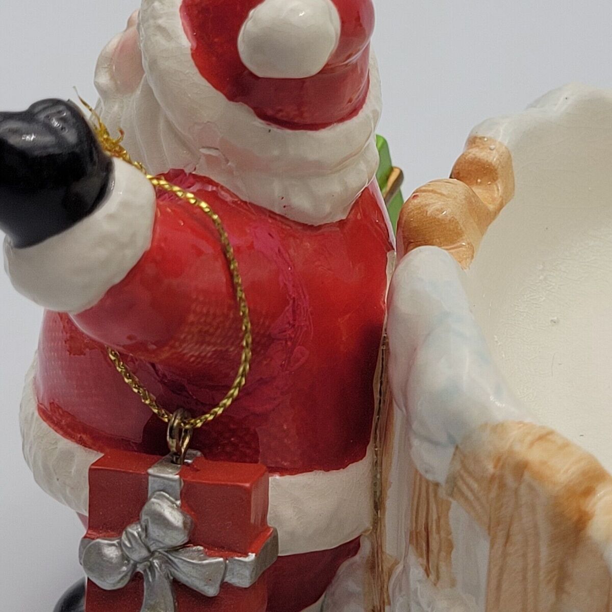 Get into the holiday spirit with this charming Kohls candle holder centerpiece, perfect for Christmas decor. The design features a festive Christmas tree, jolly Santa Claus, and cheerful snowman, all beautifully crafted for an attractive display. The candle holder is suitable for any occasion and is not handmade, making it an ideal choice for collectors of holiday and seasonal items