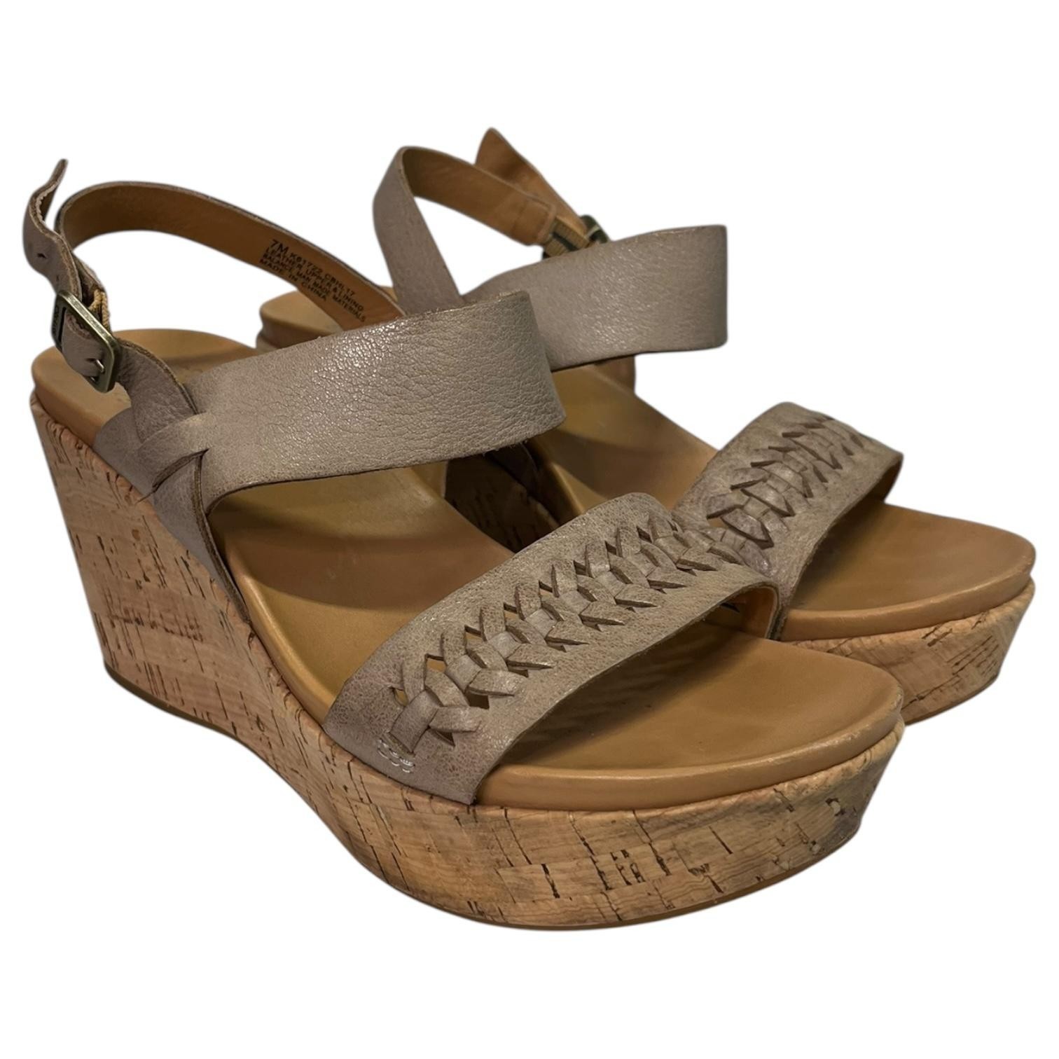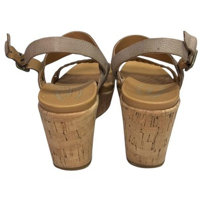 - Kork Ease Sandals Womens 7 Tan Leather Wedge Austin Braid Cork Espadrille Beach