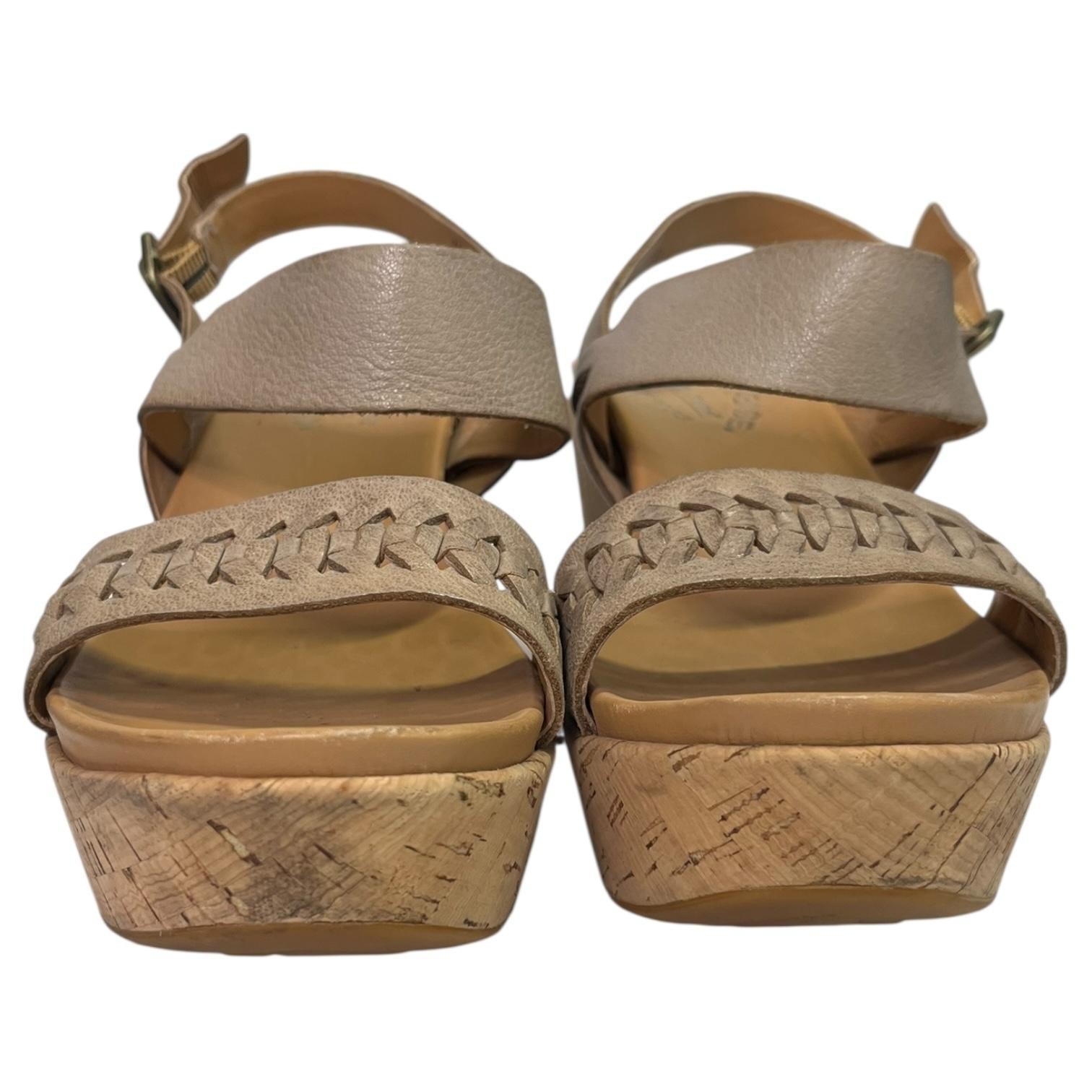 Kork Ease Sandals Womens 7 Tan Leather Wedge Austin Braid Cork Espadrille Beach