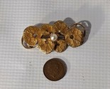 - Kramer Gold Cold Plated Water Lily Leaves Pin Brooch with Pearl Signed