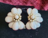 Kramer Milk Glass Vintage clip on earrings in a floral design set in silver tone metal