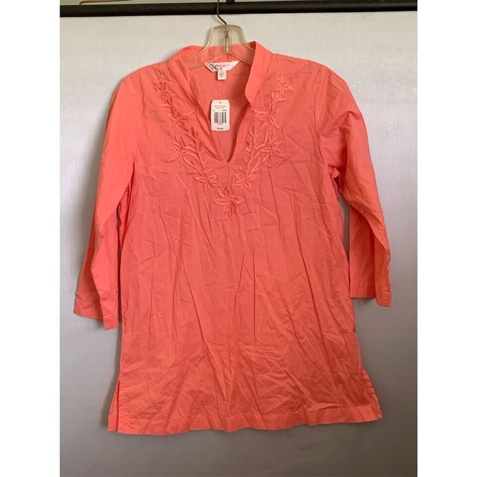 - Krazy Kat Women's Coral Embroidered Floral Tunic Top Small 3/4 Sleeve