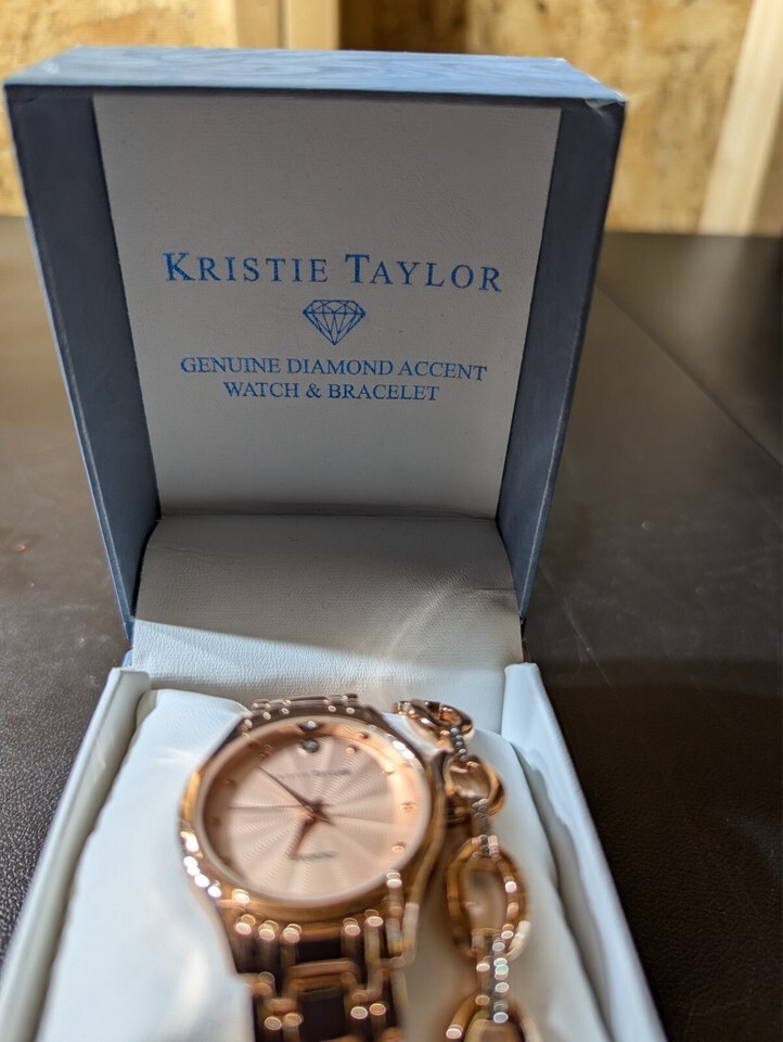 - Kristie Taylor Diamond Quartz Ladies Watch And Bracelet Set New Open Box