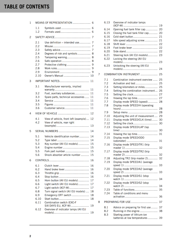 - KTM 2022 - 450 500 EXC-F SIX DAYS XCF-W - OWNERS MANUAL USER GUIDE