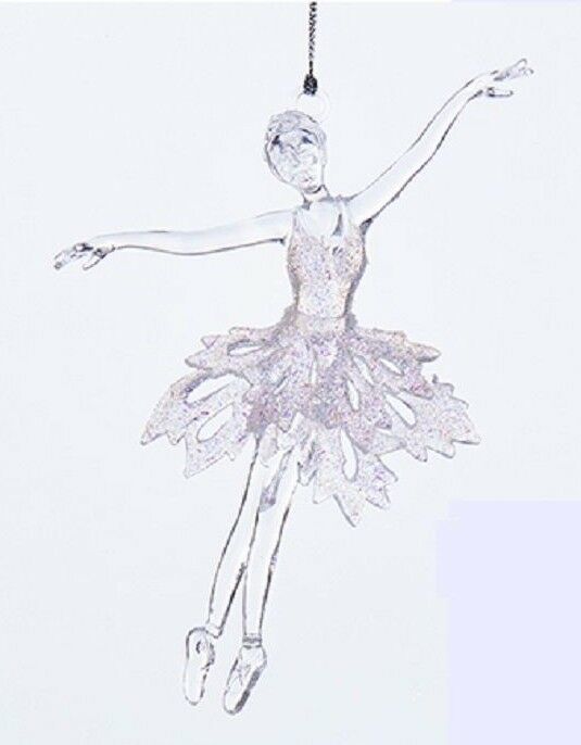 BRAND NEW with tags KURT ADLER SET OF 2 PINK WHITE ACRYLIC BALLET GIRL BALLERINA XMAS ORNAMENTS