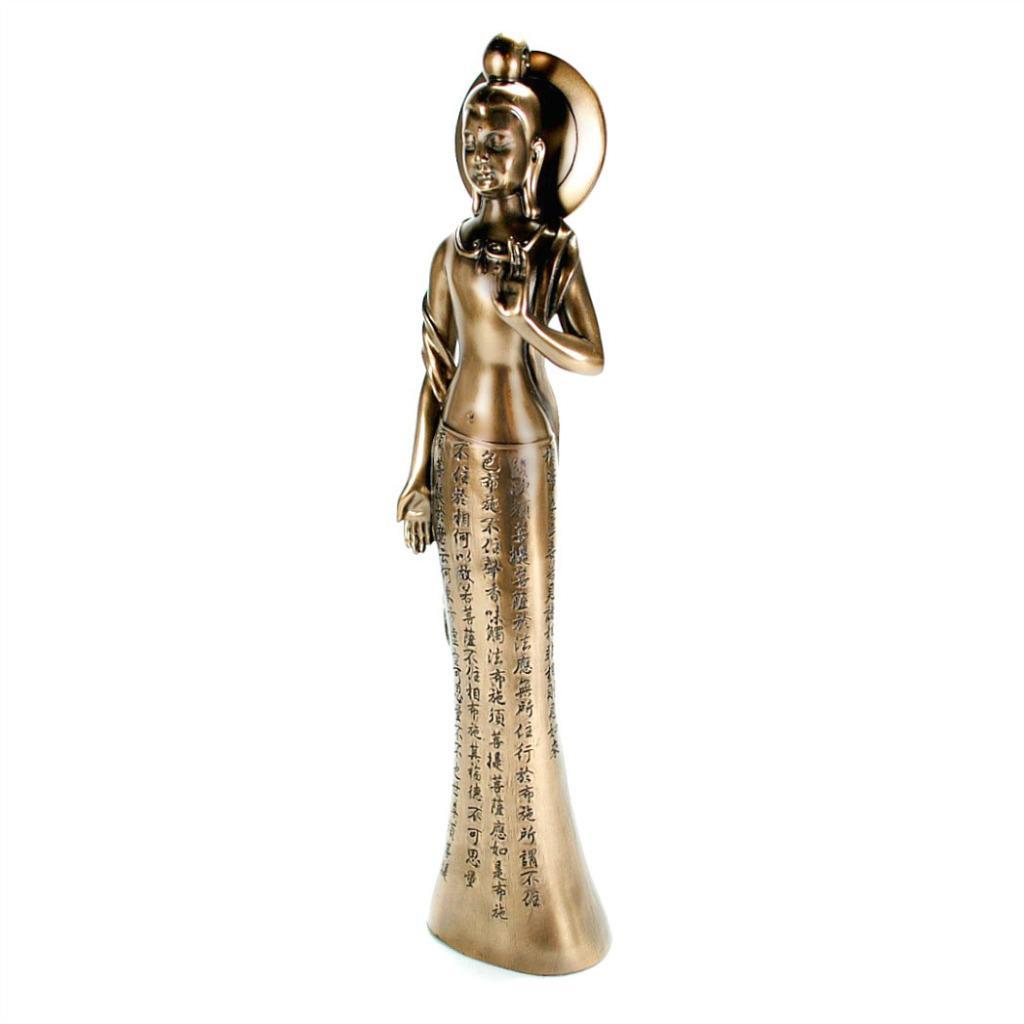 - Kwan Yin Diamond Sutra Statue 11" Slim Guan Yin Quan Bronze Resin Buddha Goddess