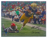 This Notre Dame Fighting Irish 16" x 20" photograph titled "Diving Touchdown" has been personally hand-signed by Game Day Legends exclusive athlete, Kyren Williams. Williams added the inscription "Go Irish." It comes with an individually numbered, tamper-evident hologram from Beckett Authentic as well as Game Day Legends. To ensure authenticity, the hologram can be reviewed online. This process helps to ensure that the product purchased is authentic and eliminates any possibility of duplication or fraud.