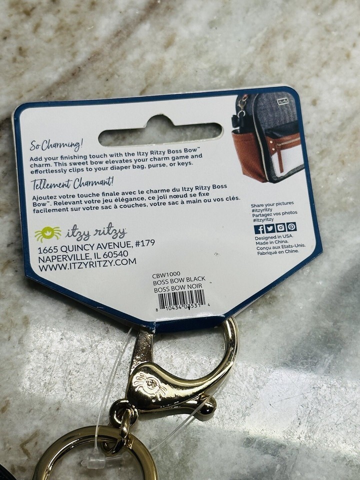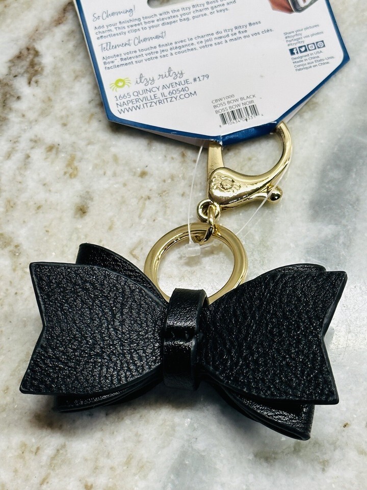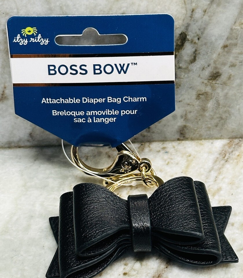 Introducing the Kyzyl Ritzy Boss Bow Attachable Diaper Bag Charm. This stylish charm is perfect for adding a touch of personality to your diaper bag. Designed by Itzy Ritzy, this charm is made to last. The black color and unisex design make it a versatile accessory for any parent.