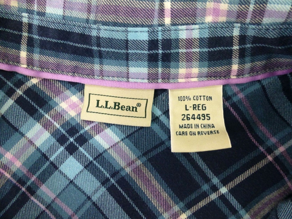 - L.L.Bean Mens Plaid Long-Sleeve Button-Up Shirt L Regular Blue/Purple 100% Cotto