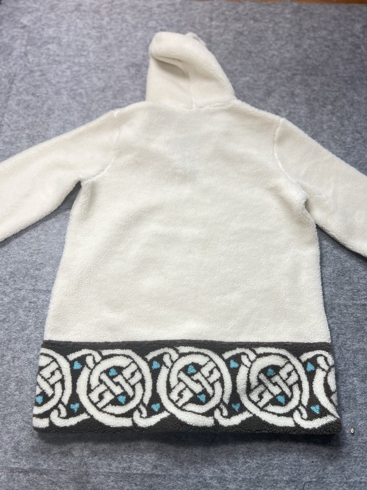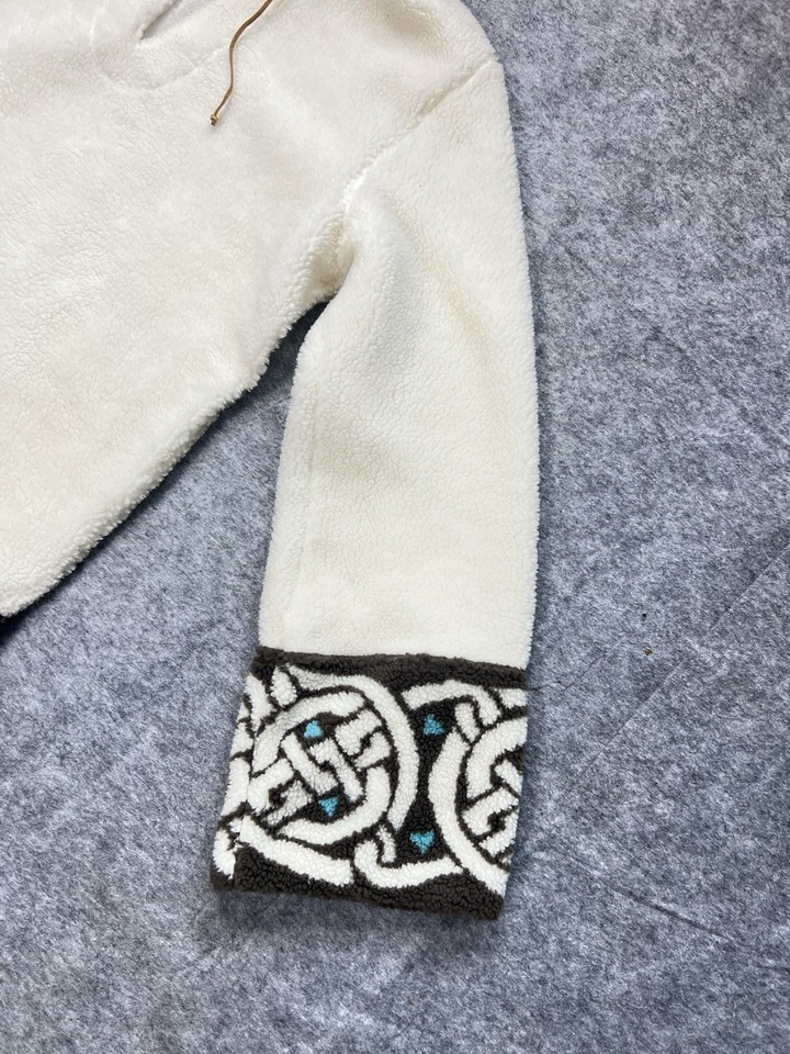 boho, fleece, sherpa, hoodie, pullover, nordic pattern, white, |