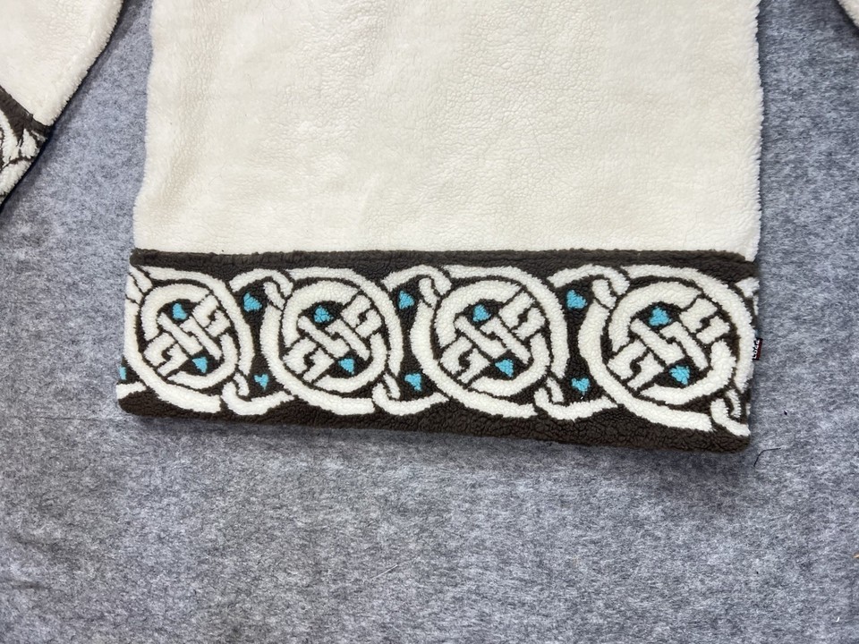 Ultra-soft sherpa fleece texture Embroidered tribal/Nordic patte |