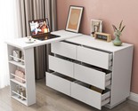 Additionally, 6 large drawers and three-tier storage shelf provide ample storage for your office supplies and personal items. This l shaped desk with cabinet keeps the workspace tidy and efficient, and easy access to all your office essentials.