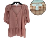 LC Lauren Conrad Women’s Plus 1X Orange Gingham Ruffle Hem Puff Sleeve Blouse