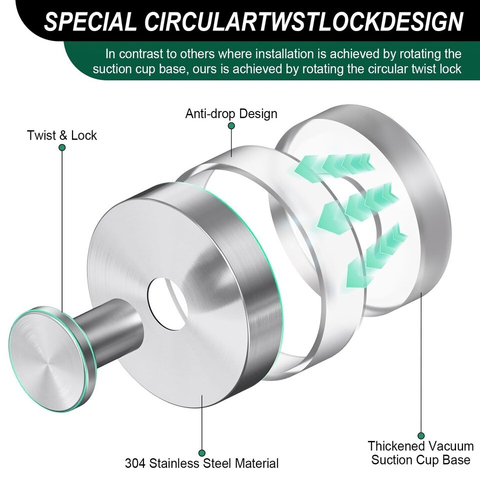 High quality and reusable materialsThe shower suction cup hook is made of durable 304 stainless steel material, which is waterproof and rust proof. Rotate the knob counterclockwise to easily disassemble, then pry it out with a knife. Cleaning the bottom of the suction port can be reused