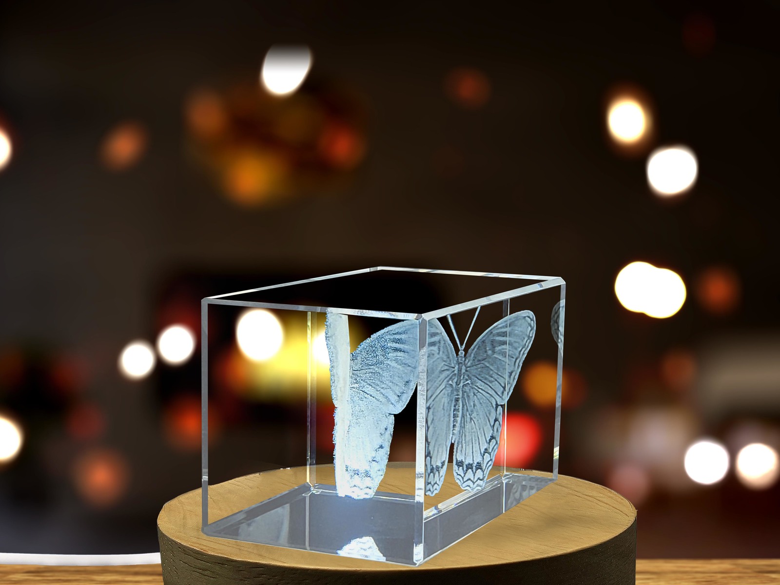 - LED Base included | Red Spotted Purple Insect Crystal Engraving - Unique 3D