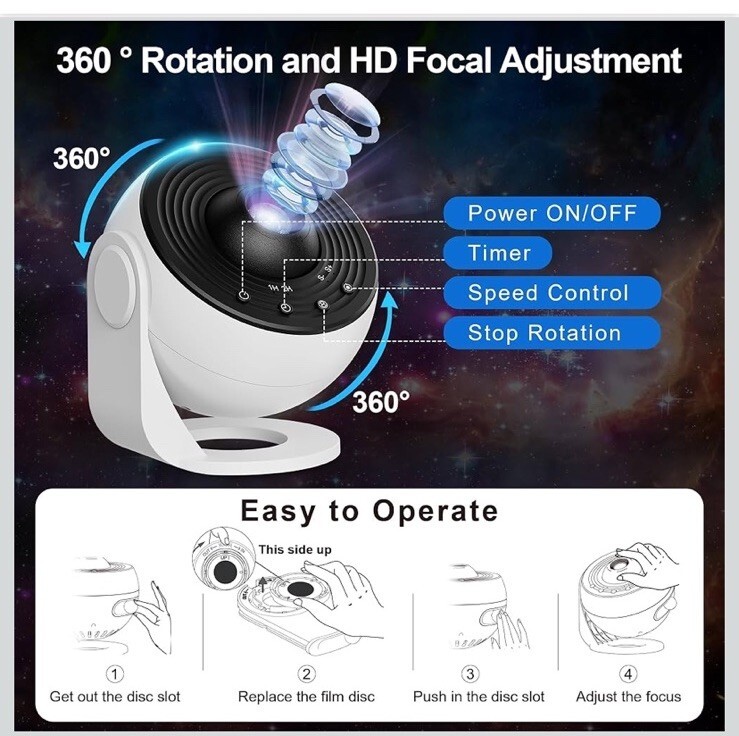 - LED Galaxy Projector Starry Night Light Moon Star Sky Nebula Projection Lamp