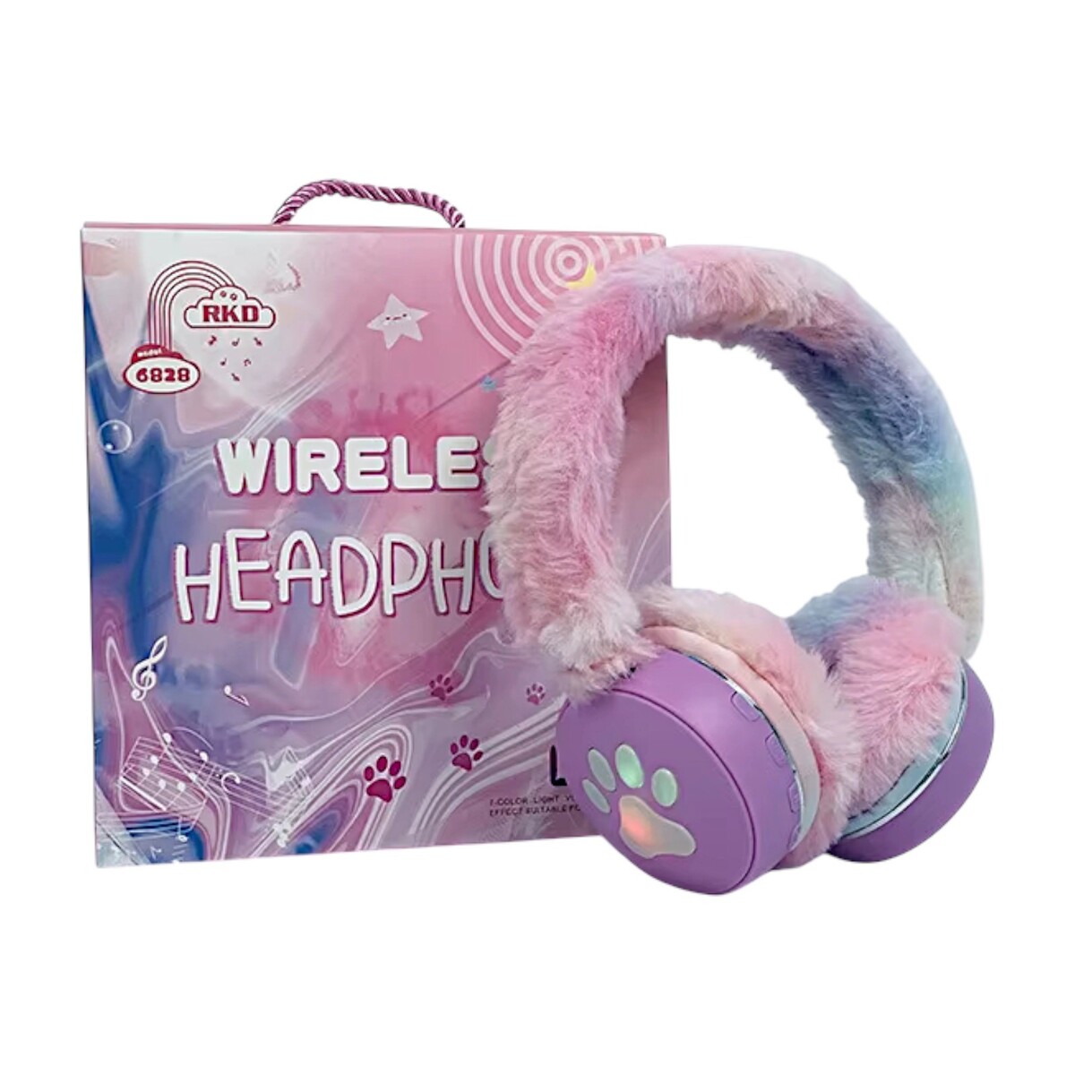 - LED Paw Design Bluetooth Headphones Over-Ear Fluffy Warm Headband Girls Gift Box