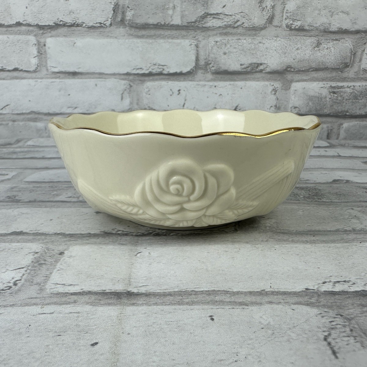 - LENOX Rosebud Bowl Embossed Scalloped with Gold Trim Small 5-5/8”