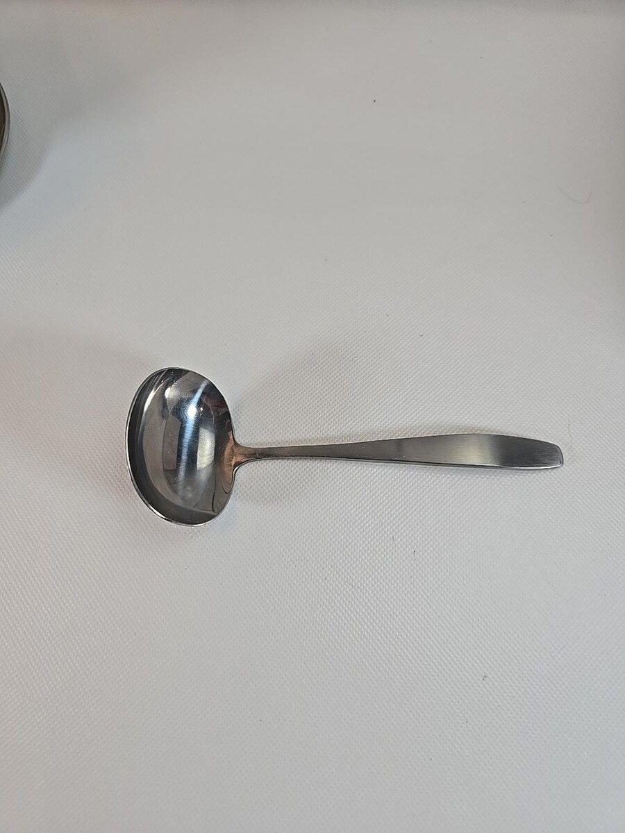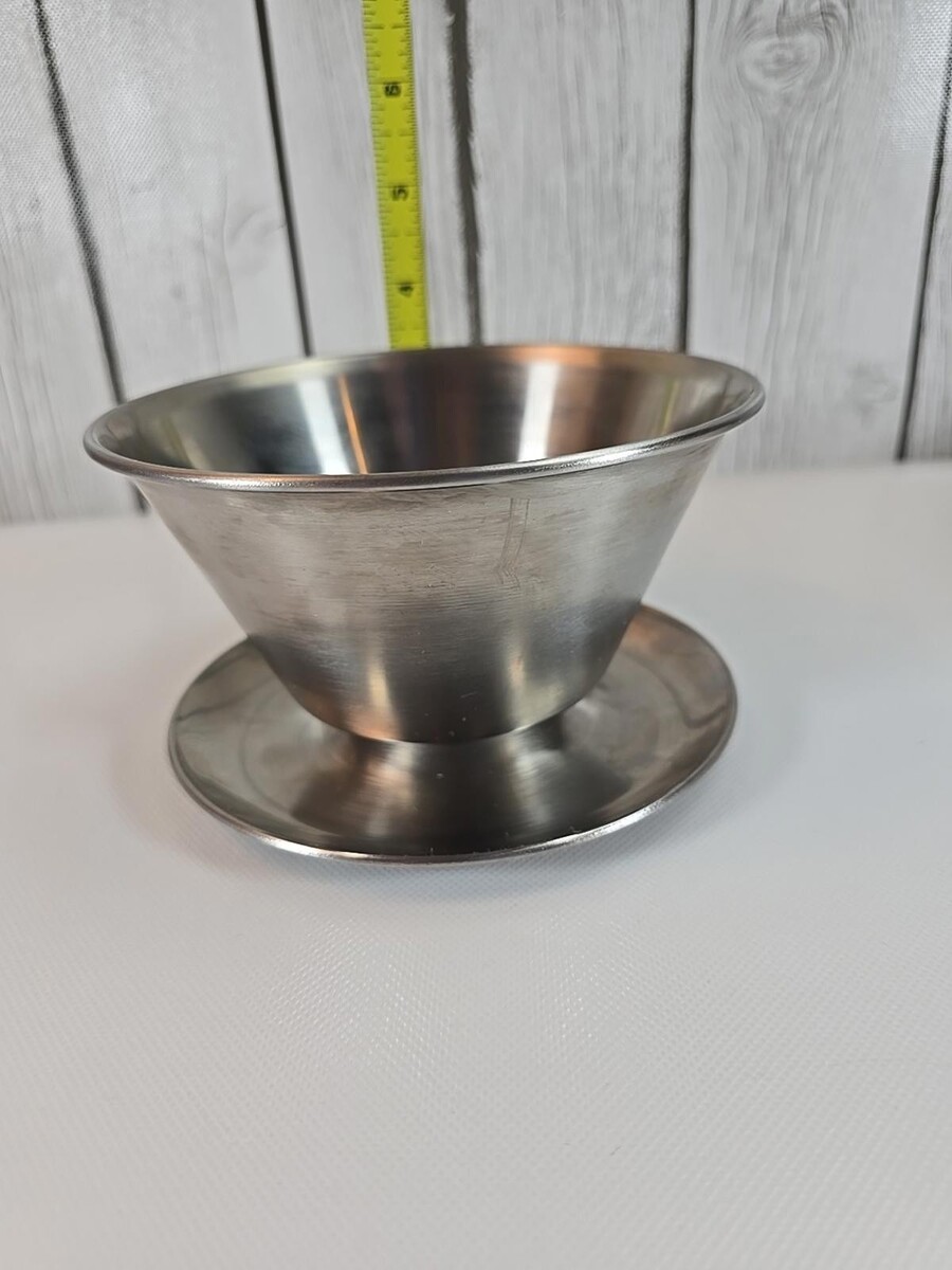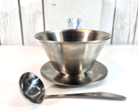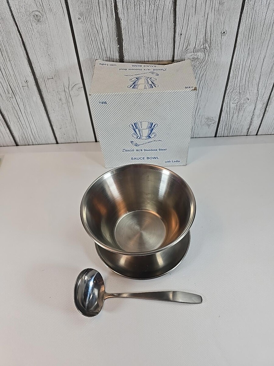 - LEONARD SILVER Stainless Round Gravy Bowl w/Attached Underplate, Ladle & Box