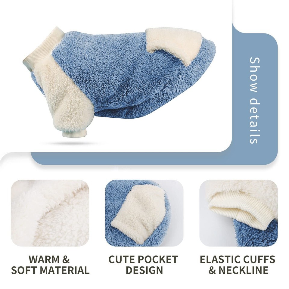 Fleece dog sweater: Made from soft and comfortable material, with plush furry handfeel, make this doggie sweater warm and cute. The sweater fabric is stretchy, wrapping around your pup like a hug but not tight.
