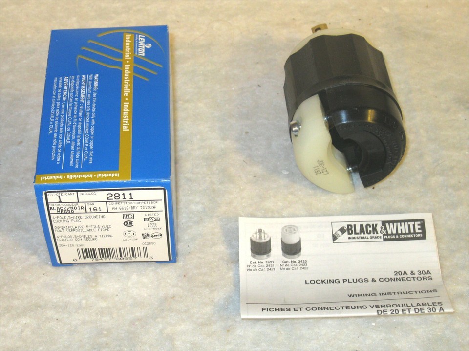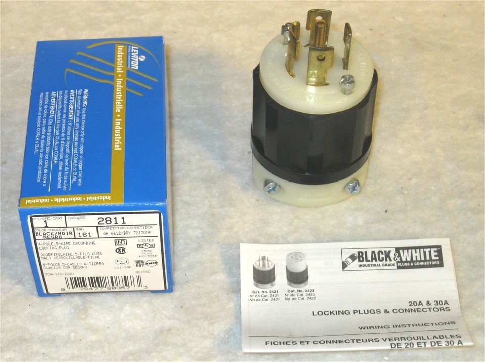 Leviton 2811 (BLACK-WHITE) - 30 Amp, 120/208 Volt 3PY, NEMA L21-30P, 4P, 5W, Locking Plug