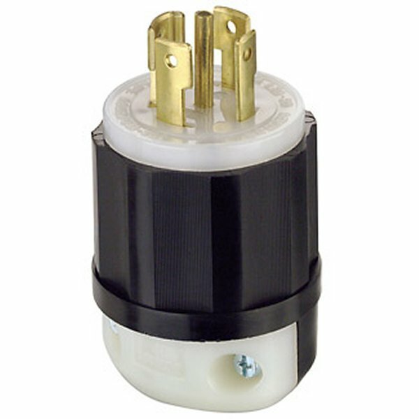 30 Amp, 120/208 Volt 3PY, NEMA L21-30P, 4P, 5W, Locking Plug, Industrial Grade, Grounding - BLACK-WHITE
