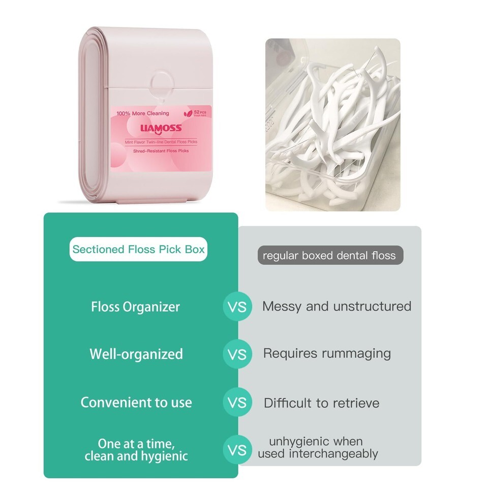 Innovative Floss Picks Container: Featuring a cleverly designed compartmentalized storage, this tooth floss container ensures each strand has its designated spot, making it organized and easy to access. Say goodbye to the clutter and hello to convenience!