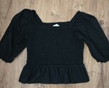 - LOFT Womens Small Black Smocked Peplum Puff Sleeve Square Neck Blouse