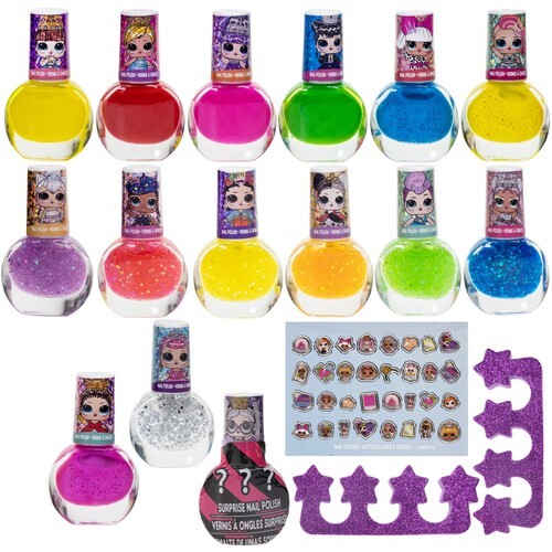 LOL Surprise Girl Peel-Off Nail Polish Activity Set for Girls, Ages 3+ with 15 Nail Polish Colors, Toe Spacers and Nail Stickers, Perfect for Parties, Sleepovers and Makeovers