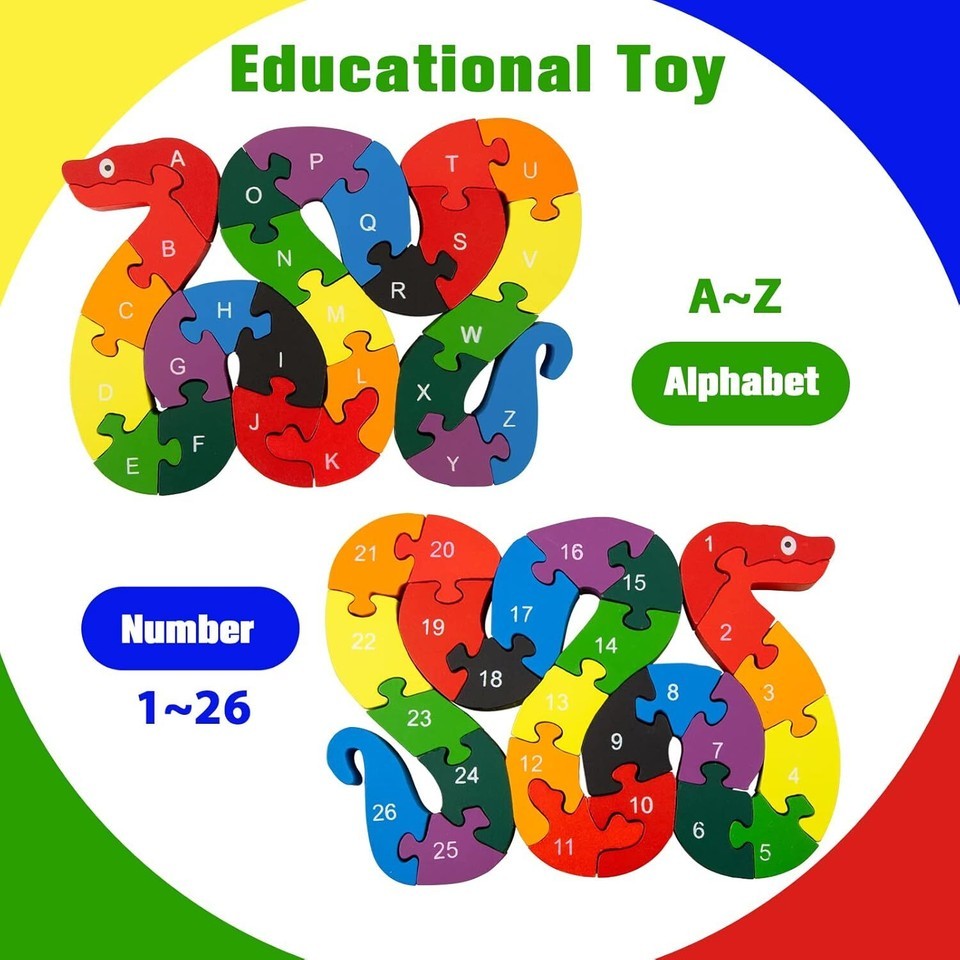Snake Shaped Puzzle - Our wooden puzzle is designed into a snake shape to help recognize animal appearance and structure, training baby memory and begin assembling ability.