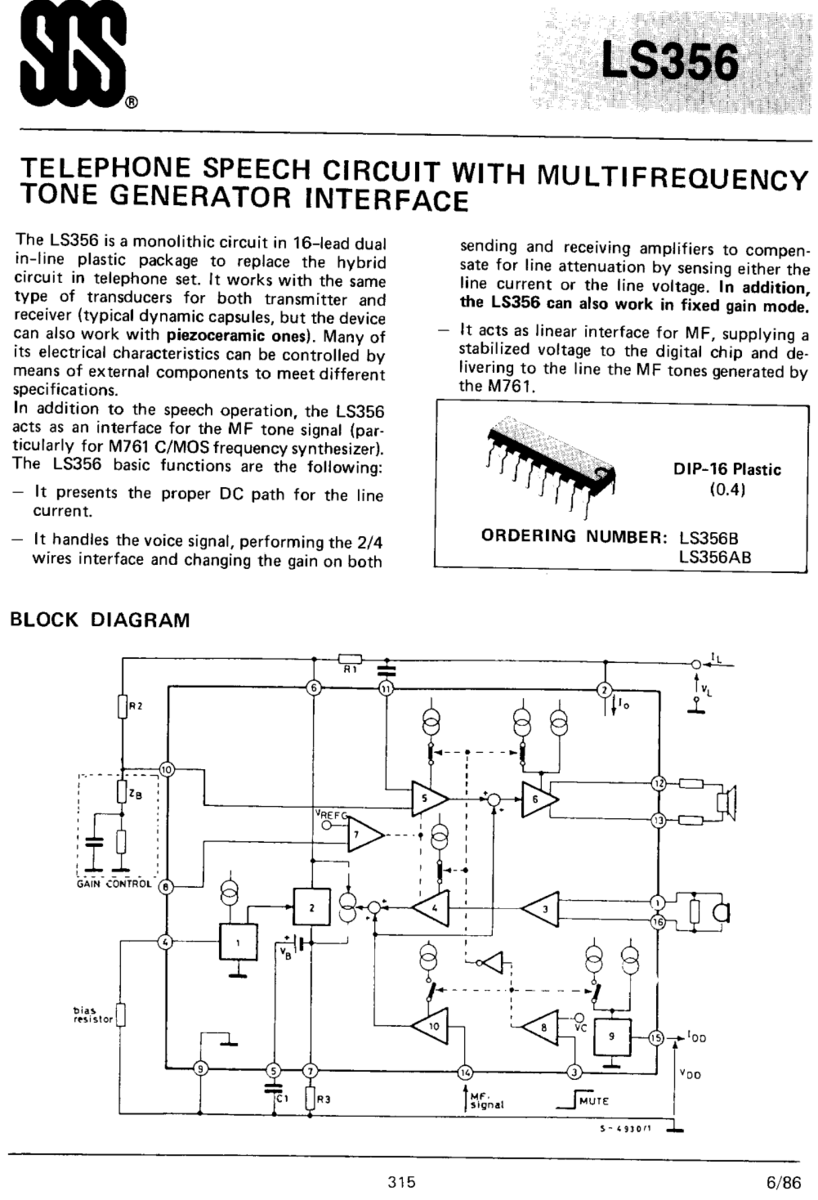 - LS356B SGS THOMSON Telephone Speech Circuit Multifrequency Tone Generator DIP-16