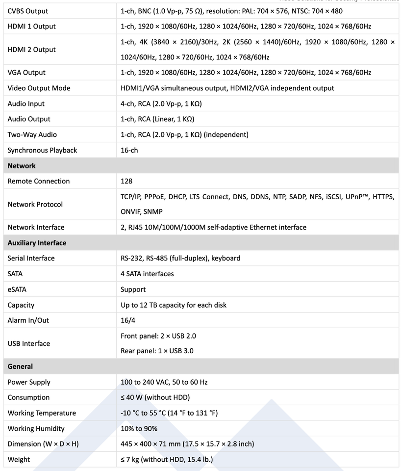 Platinum, TVI DVR, 32ch, Alarm/Audio, VGA, 2x HDMI, UL, H.265, 1.5U Case, Supports 4 SATA up to 12TB each, TVI/CVI/AHD/Analog/IP 5-in-1