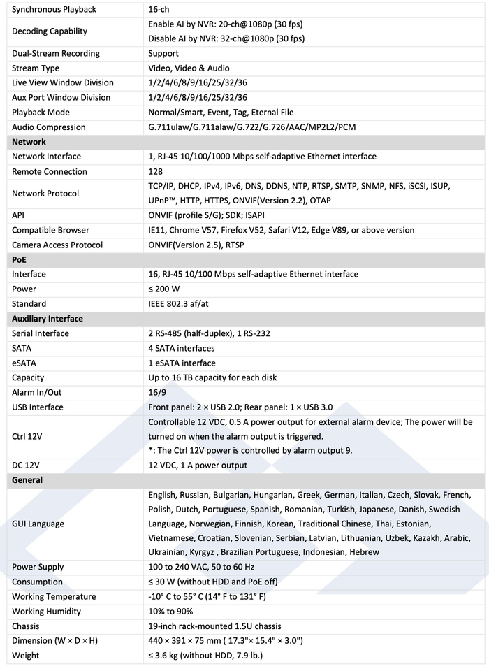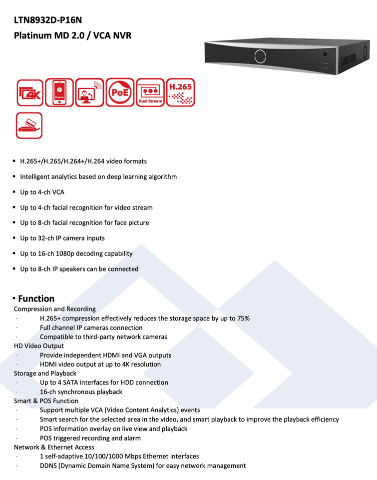 - LTN8932D-P16N IP 8K 32CH 16 Port PoE Built-In 256Mbps Up to 32MP Recording NVR