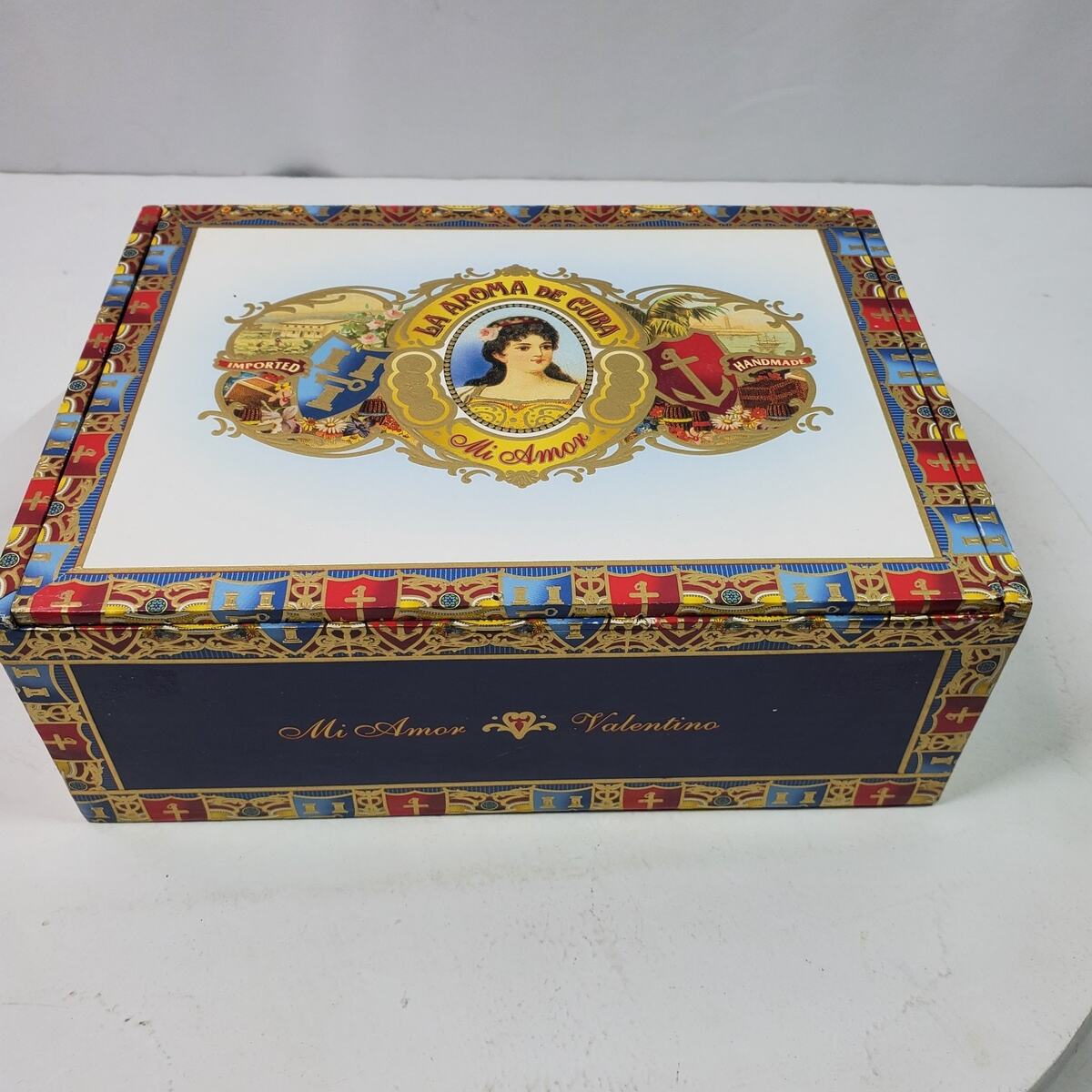La Aroma De Cuba Mi Amor Cigar Box 9x6x3" Inch Tobacciana EMPTY Wood