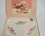 - La Fleur Swiss Style Embroidery Handkerchiefs Set Linens Vintage White Pink NOS