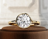 Lab Grown 2 Ct Round Brilliant Diamond Solitaire Ring Yellow Gold Bezel Ring