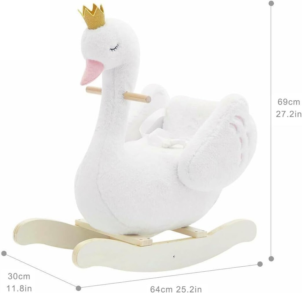 - Labebe - Plush Rocking Horse Wooden, Baby Riding Animal White Swan, Kid Ride On
