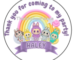 Labubu Inspired Birthday Party Favor Stickers, (12) Personalized, 2.5" Tags