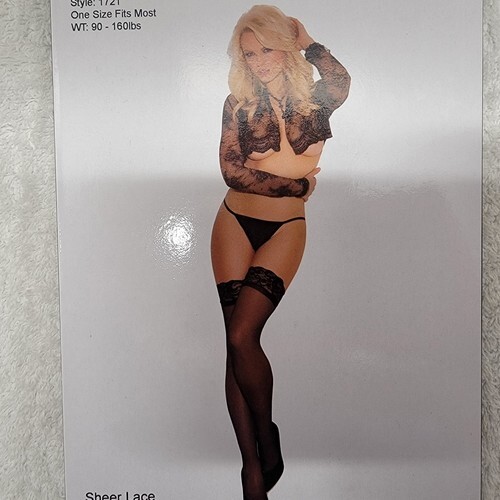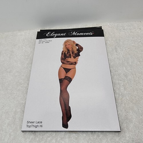 - Lace Top Thigh High Stockings Sheer ELEGANT MOMENTS One Size (90-160lbs) Black