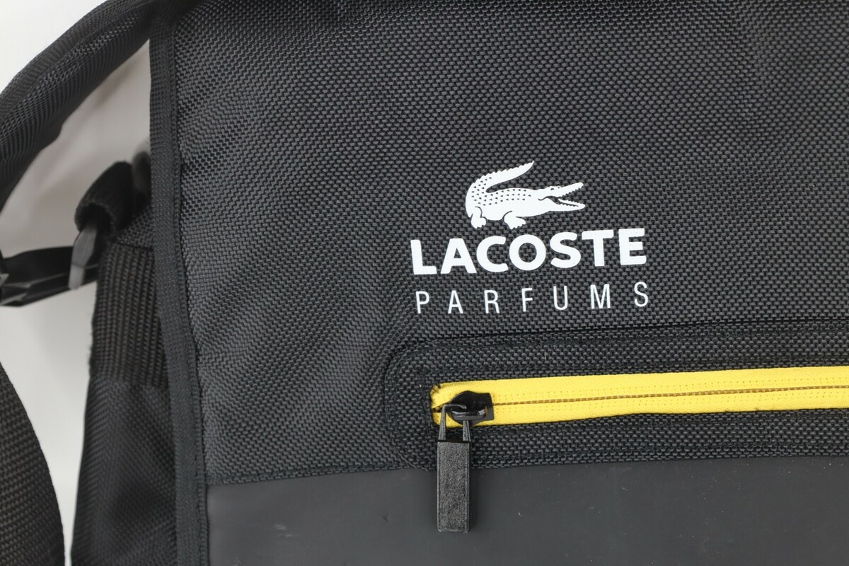- Lacoste Parfums Challenge Crocodile Logo Spell Out Crossbody Messenger Bag Black