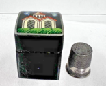 - Lacquerware Thimble Box w Sterling Silver Thimble Hand Painted Building 1.5 x 1"